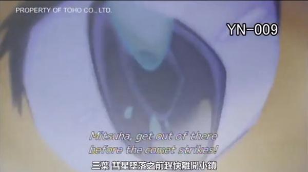 焦急不安的泷便去了系守镇寻找三叶,让人出乎意料的是三年前彗星落在了这个村子,系守镇已经不复存在了。得知消息的泷不解。但他决定找出真相。