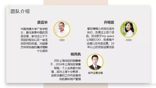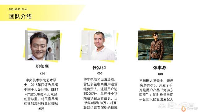 这部分的优点在于强调工作经验而非学术背景,且团队成员有相关领域的创业经验,辅以数据支撑。