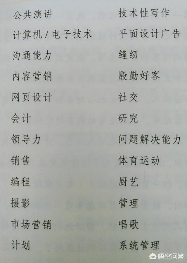 当然,你也可以记录下来,表单上没有的选项,比如,园艺,传授经验,开汽车……都是可以的。