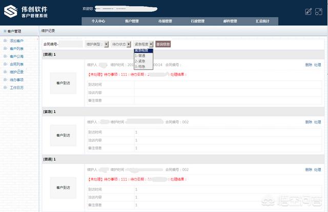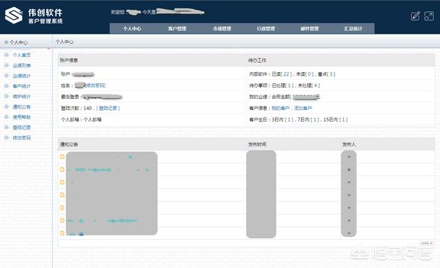 (我们公司用的伟创crm系统——个人首页,因为是基于标准产品二次开发的系统,所以价格上是属于比较便宜的,相对于定制软件)