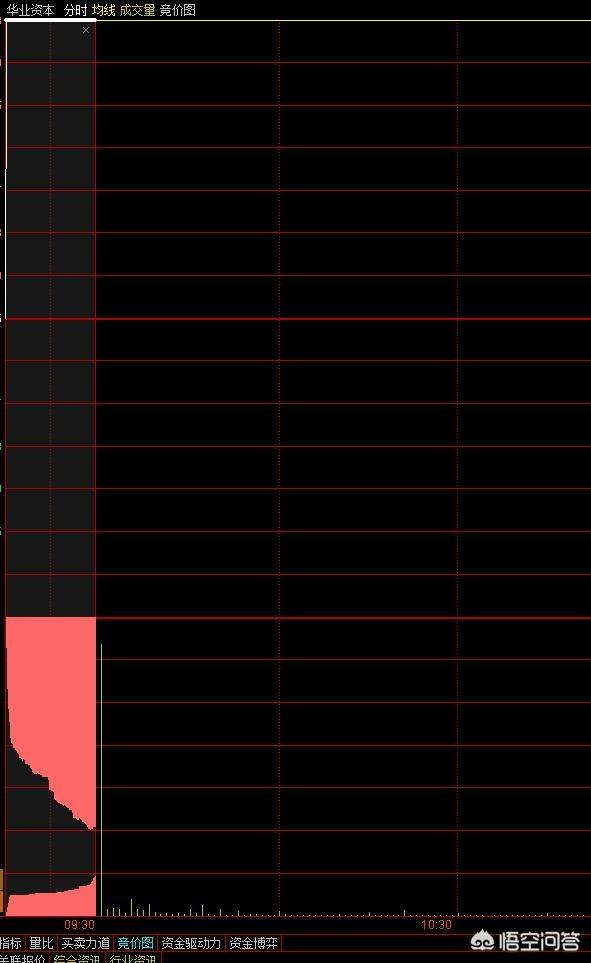 集合竞价是比较偏门的分析方式,但是现在这块领域知道的人多了也就慢慢不准了。究其原因是因为懂得人多,个股操作手也知道这块领域后,完全可以人为的改变集合竞价的挂单策略(毕竟可操作性太强了)。时至今日,笔者认为最靠谱的只有一种,那就是无量一字型(如下图所示),因为出现这种情况,即便你挂单追板,估计也排不上队了,偶尔排得上那应该算是修来的福分!