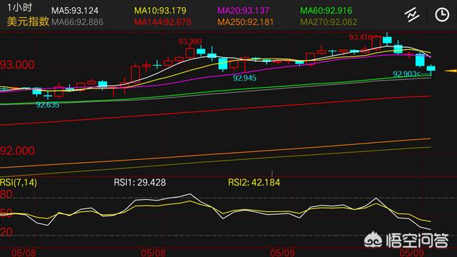 先来看看美元走势,美元最近单边上涨,今日走出下跌,目前已跌至小时图MA60,下方海有MA144支撑,晚间美元大概率会向上反弹。