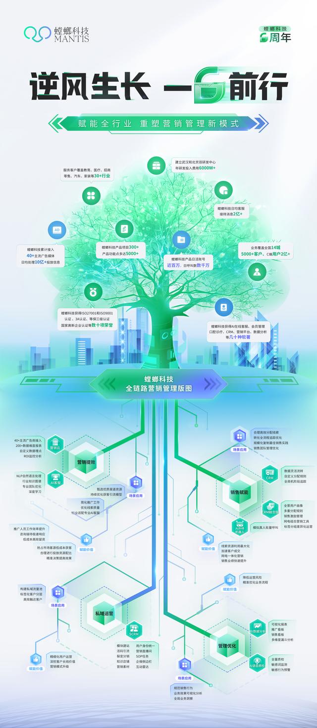 螳螂科技从早期深耕单一行业SaaS产品升级为通用性更强的全链路营销闭环产品。“通用性更强”意味着螳螂科技的产品将更灵活地适配更多的行业需求,满足多种行业客户的个性化需求。为了可以更快地具备全行业服务能力,首先,螳螂通过重金引入了AI技术专家团队、行业解决方案专家,逐渐深入到To C企业的实际业务环节中,相继打造出营销云、AI在线客服、AI外呼机器人、CRM、CRM融合版、SCRM全链路闭环的产品体系。与此同时,螳螂科技也进一步加深了对技术能力的进化,更完善AI能力,加快了基于智能外呼ASR、RPA技术的研发能力。这一切都是为了可以更快速的适应To C全行业的营销链路,助力企业早日实现营销自动化。