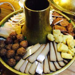 辅料:炸豆泡儿、炸肉丸子、炸鸡蛋(先煮熟剥皮后炸成焦黄)、粉条(宽的红薯粉)、大白菜