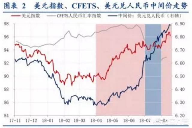 - 把美元指数,人民币中间价(或者离岸CNH)与CFETS指数篮子对比,孰强孰弱,可以简单判断RMB贬值或者是升值来源于美元压力还是篮子货币压力(如下图)