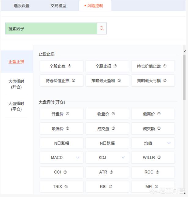 目前部分券商也开发了量化策略平台,但一般仅适宜大客户使用,下图是一个网页版的量化平台的例子,可通过风险控制设置止盈、止损。