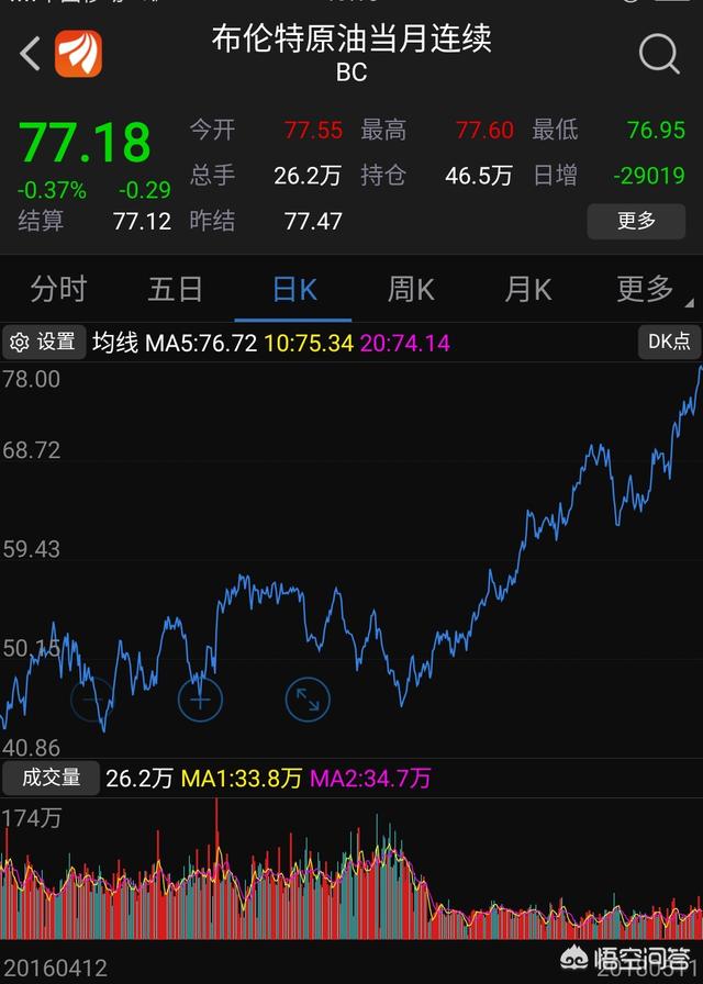 我们知道,影响原油价格的因素,不外乎需求,产油国的产量,基本上这两大因素决定了原油的价格走势。2018年布伦特原油期货当月连续电子盘价格一路飙升,从40美元涨到最高78美元,才有了滞涨的信号,短线出现调整。