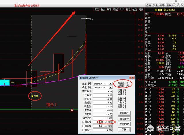 【解析】金花股份 ,该股上个交易日已经提到过,依据引爆加仓信号的出现所选择出来的,今天继续强势涨停,从11月13号到今天一共5个交易日内,涨幅直接拉升到43%,这里就不多说了。