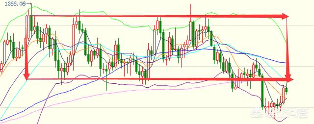 黄色从日走势线图中可以看出,前期一直在走大的箱体震荡,上周反弹到箱体下沿附近遇阻回调。金价前期跌破年线,反复在年线下方震荡,最终突破年线目前在中轨和MA144附近受阻,最终收于MA20下方。布林带上下轨缩口,中轨向下运行。从日线图来看,后期大概率是震荡,等待布林带缩口。