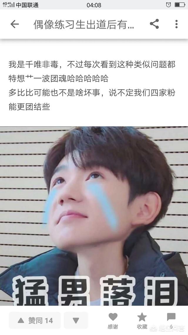 问到这个问题我就想到,千玺参加的新综艺,是选择别人,而偶像练习生是被别人选择。这对比有点残忍。他们三参加综艺,都是带动综艺。而偶像练习生是靠综艺才出名的。他们三是出道四年上了三次春晚 。而偶像练习生说句不好听的话能不能出道还是问题。就算顺利出道能不能长久的走下去,也是未知数。只从他们三取得成功,有多少大公司看着眼红,马上培养自己男团出道,来和tfboys..抗衡,也想分一杯羹,结果全军覆没,至今无人能超他们。别的都是公司花大价钱培养艺人,时代峻峰是靠三个艺人养活整个公司。小孩才出道录自己家综艺穿着淘宝爆款女装。他们要准备去台湾录节目,粉丝给孩子们买衣服寄过去,结果他们去了,还真穿上了。你们看哪个公司粉丝像时代峻峰粉丝骂公司像骂孙子似的,因为公司的不专业挨了不少骂。