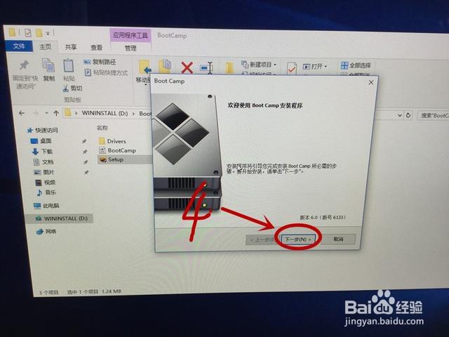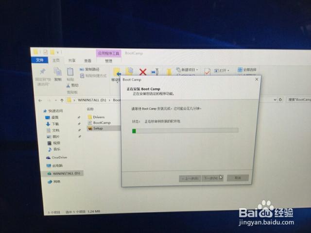 16打开U盘,双击bootcamp,进入bootcamp后,点击Setup。开始安装bootcamp驱动,点击下一步。等待安装。安装完成后,大功告成。