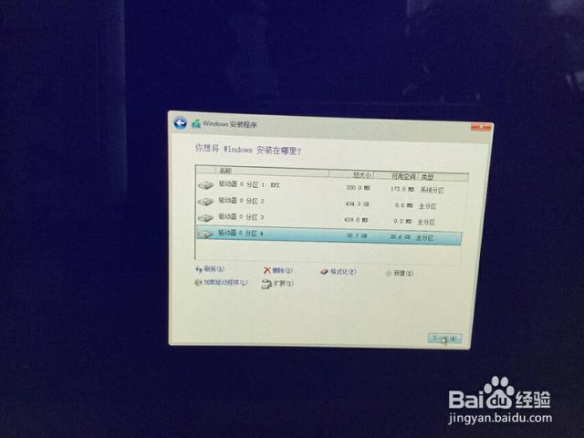 12格式化完成,再选择分区4,点击下一步。开始安装。(windows会自动安装并重启数次,耐心等待)