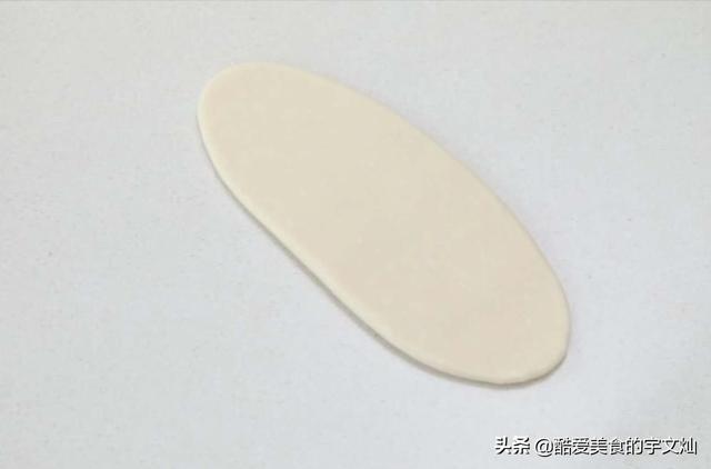 将面团压扁,擀成牛舌状