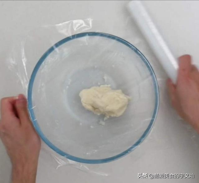 1.油皮材料混合,揉至出膜,包上保鲜膜醒15分钟。