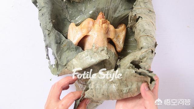 将干荷叶放入凉水中泡上一会儿,往一个碗中加入面粉,然后再一点点加入白酒和凉水,把面揉成一个软硬适中的面团。将腌好的鸡上面抹上一层胡椒粉和五香粉,将洋葱和香菇都清洗干净,然后切成丝。把香菇丝和洋葱丝放入之前腌制鸡肉的汤料中,并且充分混合在一起。混合好的料汁和洗过一遍并切碎的姜片,蒜末一起放入鸡的肚子中。把已经泡过水的荷叶取出来,将整只鸡都包裹在荷叶里。把面团擀成一个大小适中的面片,把用荷叶包裹的鸡放在面团的中间,再用面团裹起来,把口合上。
