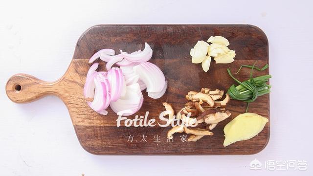 香菇清洗干净去蒂,老姜切片,香葱打成结。