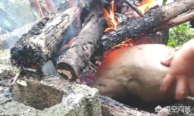 6、下面我们就开始制作了,在野外,条件不是很好,那么我们就找来了几块石头,然后找到一些柴火,搭起了一个简易的框子,然后将叫花鸡放框子里面,上面加火进行烧,烧到一个半小时的时候,将叫花鸡翻面再次在上面烧火,差不多3个小时,叫花鸡也就熟了,这个期间我们可以去钓鱼,还可以做其他的一些事情;