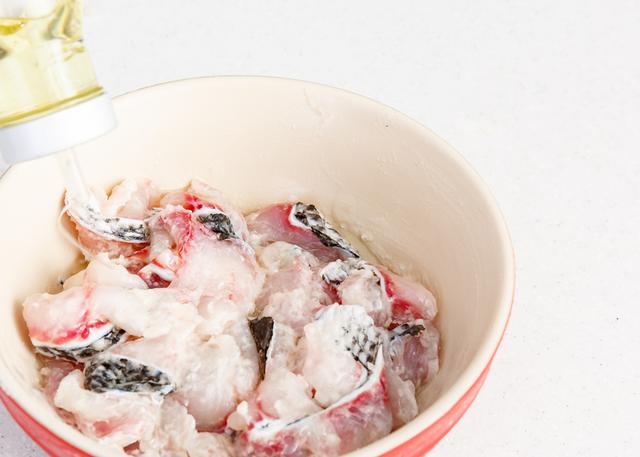 11. 锅中倒入植物油,烧至8成热时,淋入装好鱼片的碗内即可,需要油量比较大,因为要保证温度够把鱼闷熟