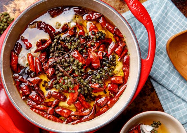辅料:青花椒30g,干辣椒50g,盐5g,蛋清1个,生粉8g,植物油800g,辣椒酱50g