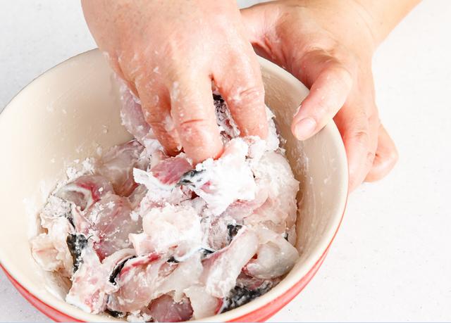 2. 清洗好的黑鱼段对半切开