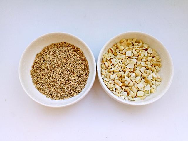 5.准备好熟芝麻和熟花生碎