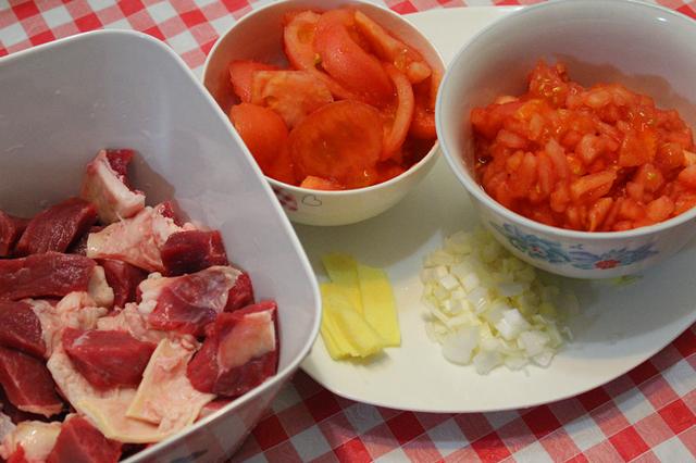 主料:新鲜牛腩600g(今天没买到牛腩,用普通代替,请谅解),番茄500g