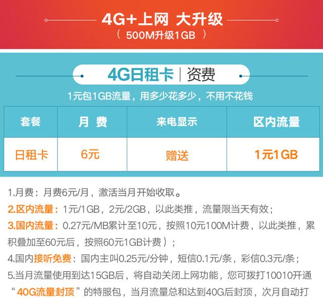 流量日租卡区内流量按天计费标准:1元包500MB,每用完500MB后自动叠加,流量仅限当日23:59:59前有效,当天剩余流量第二天自动清零,不跨日结转,不足500MB按1元收取。国内流量按0.3元/M收取。