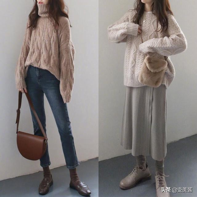 在不是很冷的初冬,我会比较喜欢直接单穿毛衣。毛衣是一件特差温暖舒适的单品,同样也超级百搭。随意穿搭都可以很美。想要穿的时尚气质一些就可以选择牛仔裤来搭配哦。利用毛衣搭配半身裙就显得更加温柔甜美。