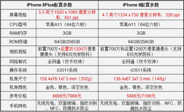 首先看一下iphone8和8plus的基本配置参数,以便对苹果8系列有个大致了解。