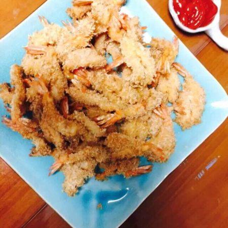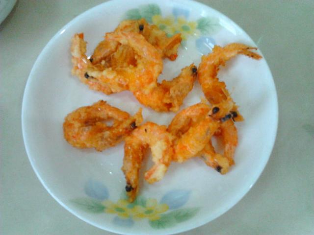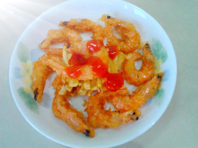 后来觉得片开虾肉太麻烦,就直接整个虾肉炸,形状也好看,还省事配上番茄酱,小朋友的最爱