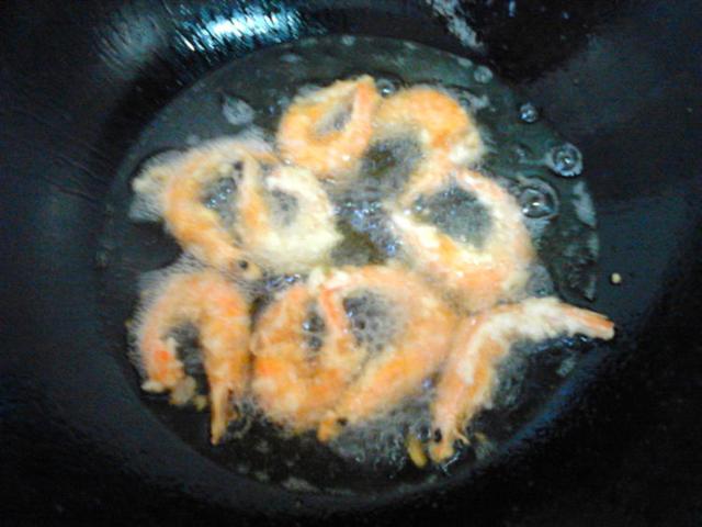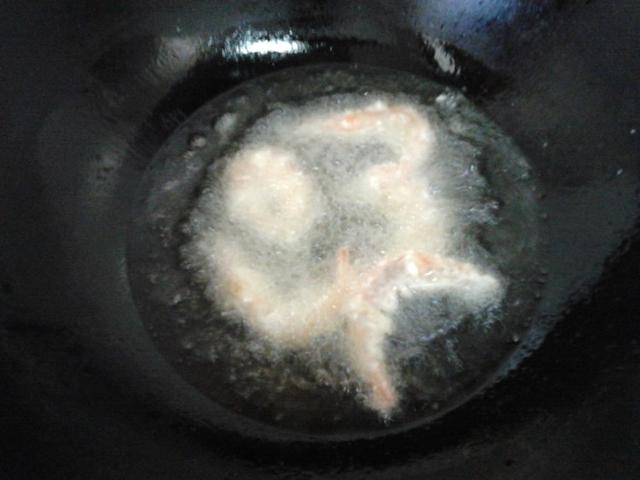 5.炸制虾变金黄泛红变脆