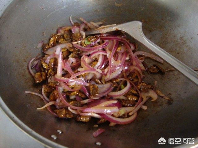 蚕蛹高蛋白,营养丰富和洋葱配一起也是挺好的。洋葱味甘、微辛、性温,入肝、脾、胃、肺经;具有润肠,理气和胃,健脾进食,发散风寒,温中通阳,消食化肉,提神健体,散瘀解毒的功效;主治外感风寒无汗、鼻塞、食积纳呆、宿食不消、高血压、高血脂、痢疾等症。