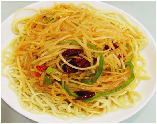 拌面的种类很多,创新的很多,像什么,西辣蛋拌面、辣皮子拌面、蘑菇肉拌面、芹菜肉拌面、韭菜肉拌面、韭菜鸡蛋拌面、蒜苔肉拌面、茄子拌面、豆角拌面,实在太多了,但我个人最爱土豆丝拌面,一盘子酸辣土豆丝配上一盘子刚下好的冒着热气的面,把菜倒在面上,一拌,哇,我感觉我的口水已经滴到键盘上了,哈哈,说真的每次吃上一盘子拉条子,感觉特别的扎实,比吃什么快餐要好的很多,又有菜又有主食,营养不仅均衡了,还能吃得很饱。