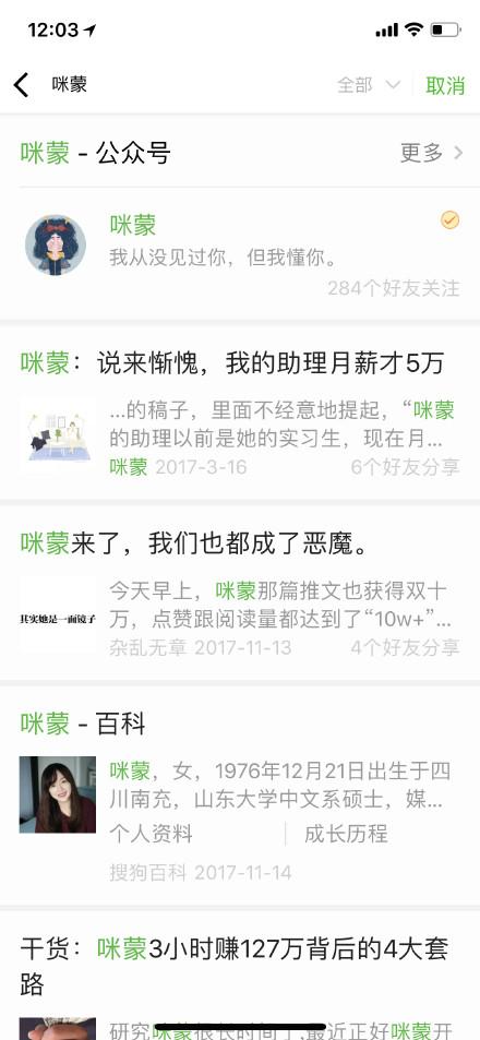 前段时间在微博上流行,看看你的朋友圈有多少人关注咪蒙,越多的朋友关注咪蒙,就说明你的人生更失败。