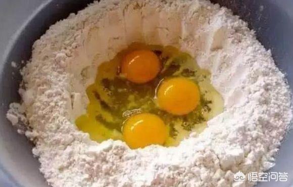 1.面粉里放入少量盐,打入鸡蛋,完全用鸡蛋和面,不加一滴水,面尽量活的硬一点。