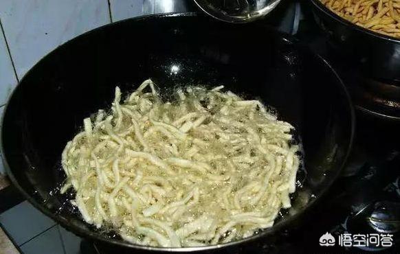 切条时不用太粗,下锅炸时一次不要放的过多,不然面会膨胀溢出锅来。