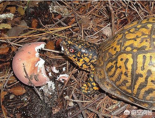图示:危险的箱龟,由于它可能吃过许多对人有毒的毒蘑菇,并将毒素积累在自己身体中,这导致野生箱龟的肉,可能对人类极其危险。
