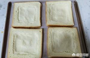 烤盘内铺上硅油纸,将压好凹槽的吐司片放入烤盘。