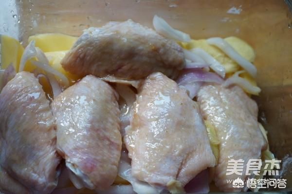 洋葱切丝,生姜切片,放入拌匀和鸡翅一起腌制,时间越长越入味