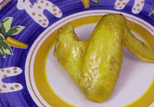 食材用料:鸡翅6只 姜黄粉少许(黑豆粒大小) 盐焗鸡粉,姜和盐