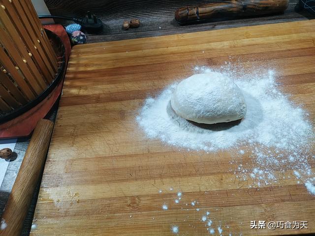 8.桌子铺上揉面垫 拿出光滑的面团;