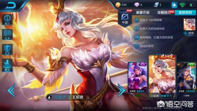 王昭君一共有四款皮肤,如果你是个人民币玩家,这个皮肤就特别实惠,必须入手了,对皮肤没有什么追求的玩家没必要买浪费钱,大可是第一时间入手了这款皮肤,确实不错,和李元芳6元皮肤是一套的。王昭君皮肤精灵公主普通皮肤没什么特效,288点券,皮肤凤凰于飞是限定皮肤有钱也没有地方买,788点券,除非有返场,偶像歌手原来是点券夺宝获得,现在已经移出了没得买。新皮肤6元带特效,如果你是玩王昭君的朋友非常值得入手