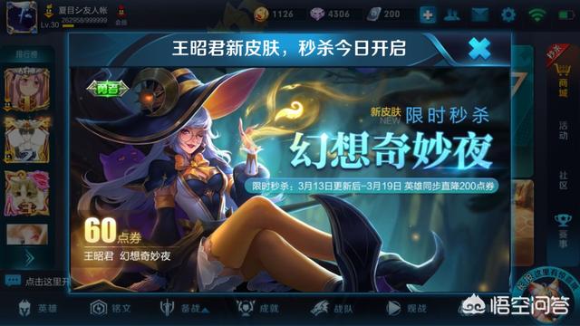 在春节期间大家都想着能够返场60点卷的黑猫、拳王、进击墨子,王者荣耀官方果然没让大家失望……没有返场,就当大家还在讨论什么返场至尊宝或者天魔缭乱的时候,它又在10号悄悄的出了一个皮肤——王昭君的幻想奇妙夜!