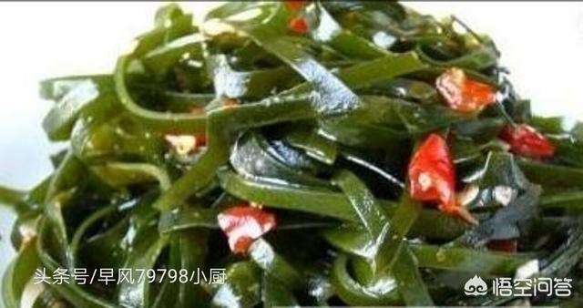 海带浸泡半小时,刷去表面白色层,切小块,放入沸水中焯水一分钟,捞到凉开水中浸冷,捞到盆中,加入香油拌匀即可。