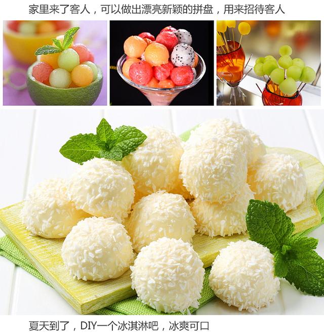 挖球器非常适合喜欢做雕花的达人,能轻松挖除圆润饱满的球型,而且花式切割,很漂亮。