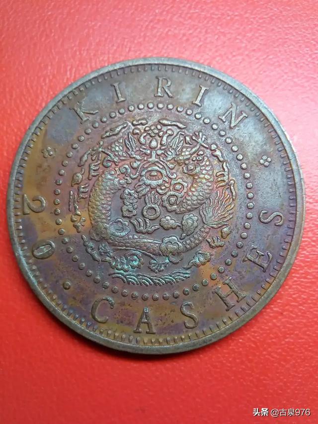你好,这种大清铜币正面是大清铜币四柱丁未二十文,背面一般是光绪年造大清龙,但这枚边圈都是英文,还真没见过。