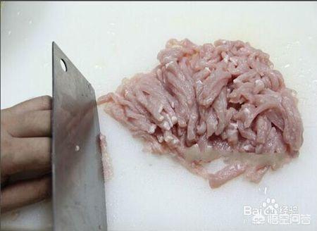 准备材料,猪肉选精瘦肉,然后把它切成丝装碗备用,葱切成葱花。