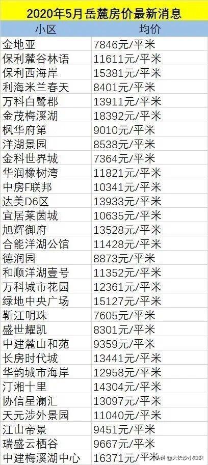 长沙最新房价情况。河西房价整体呈这个趋势。