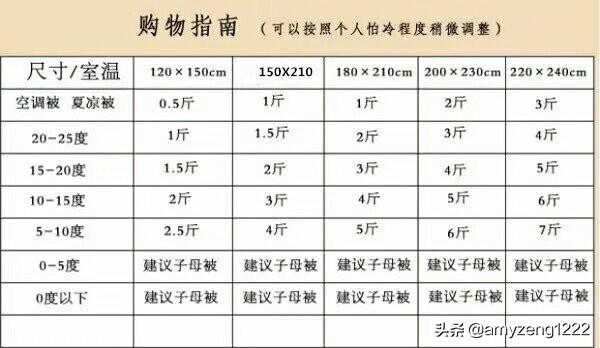 再来看看选购蚕丝被的表格: