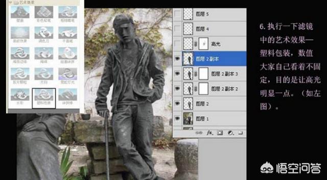 用摄影修图软件怎么把一个人的照片做出雕塑的效果?